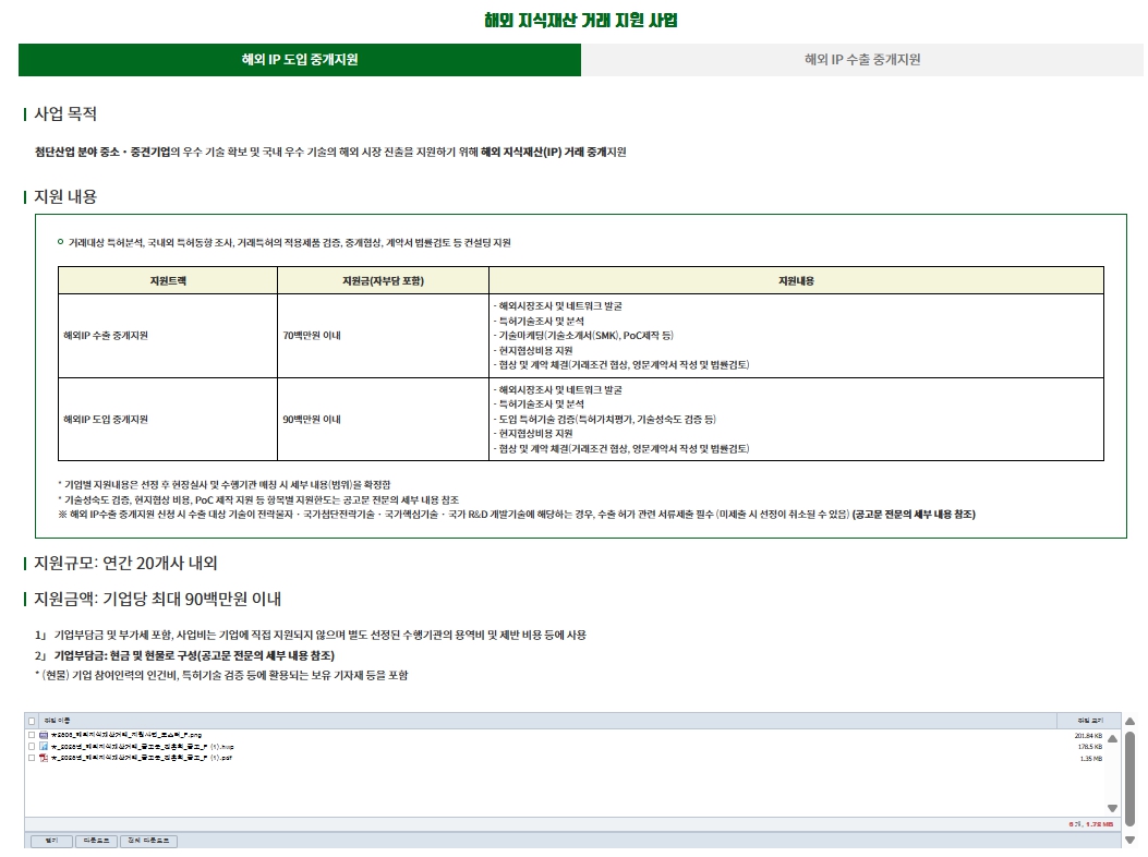 해외 지식재산 거래를 희망하는 첨단산업 분야 중소·중견기업의 많은 참여 바랍니다.